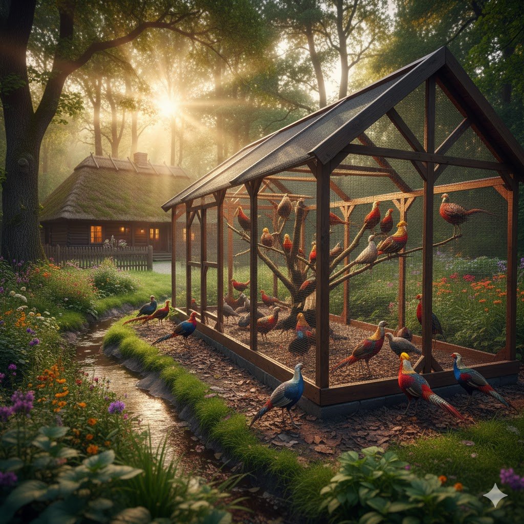 - Fazanai (auksiniai, deimantiniai, sidabriniai): Tai vieni populiariausių dekoratyvinių paukščių. Jie pasižymi neįtikėtinai ryškiomis plunksnomis, tačiau yra gana baikštūs. Jiems būtini uždari voljerai, nes jie puikiai skraido.